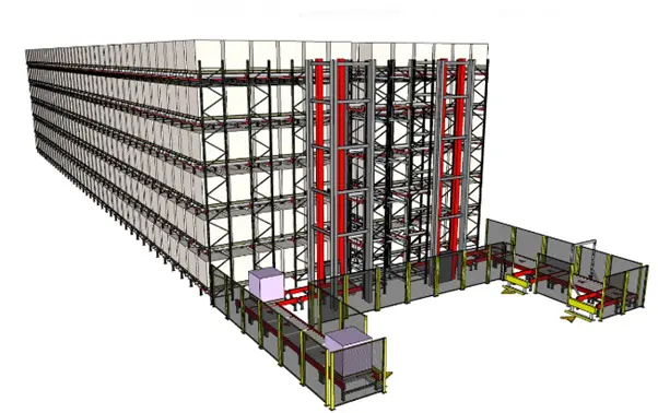 The MDS ASRS is a fully autonomous Multi-Directional Shuttle system designed to transport pallets efficiently within a compact racking structure, providing high-density storage in tight spaces or mini-stores.